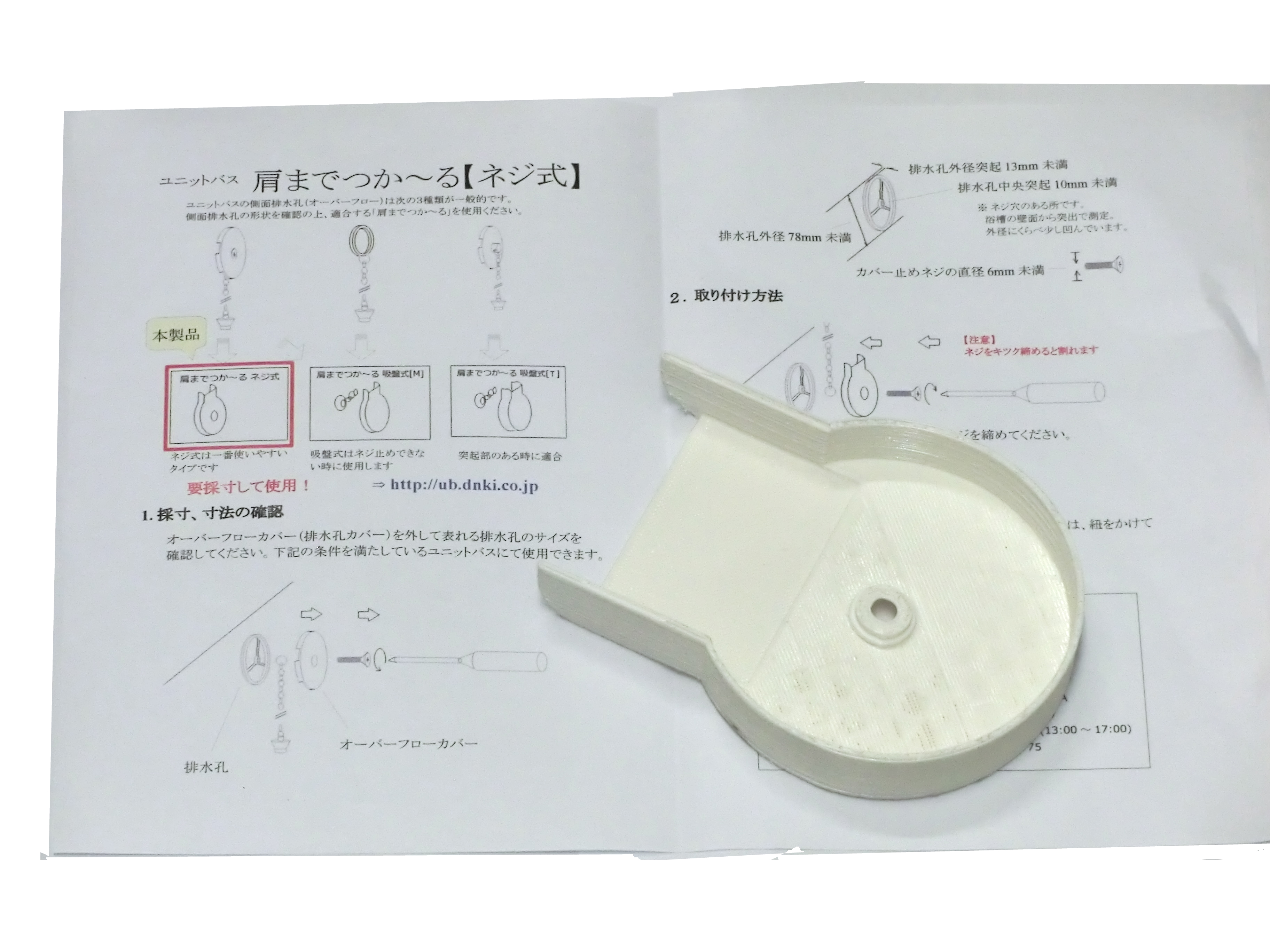 「肩までつか~る」はユニットバス用の水位調整カバーです。浴槽の側面の排水孔(オーバーフロー)はめるだけで肩までお湯に浸かれ ます。
