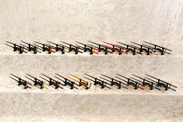 「侍箸」シリーズは、歴史上の武士や武将の刀をモチーフに、現存する刀があるものは実物を見本として、現存する刀がないものは言い伝えを基に、“柄”や“鍔”、“彩色”にも拘って創りあげた「お箸」シリーズです。2010年より販売している日本刀箸シリーズに、新たに「刀置き」型の箸置きを付属+箸先に滑り止め加工を施し「侍箸シリーズ」として発売します。「織田信長」や「伊達政宗」などの戦国武将や、「沖田総司」の加州清光や「土方歳三」の和泉守兼定などの新選組、更に大河ドラマで話題の「坂本龍馬」の陸奥守吉行などの幕末志士と、バラエティにとんだラインナップを予定しています。