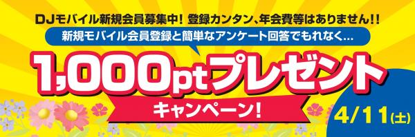 ※ 新規にDJモバイル会員登録かつアンケートにお答えいただいたお客様が対象となります。