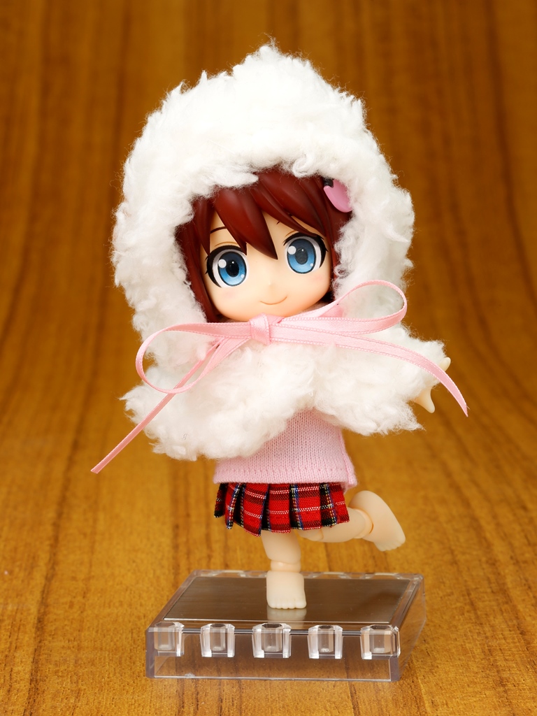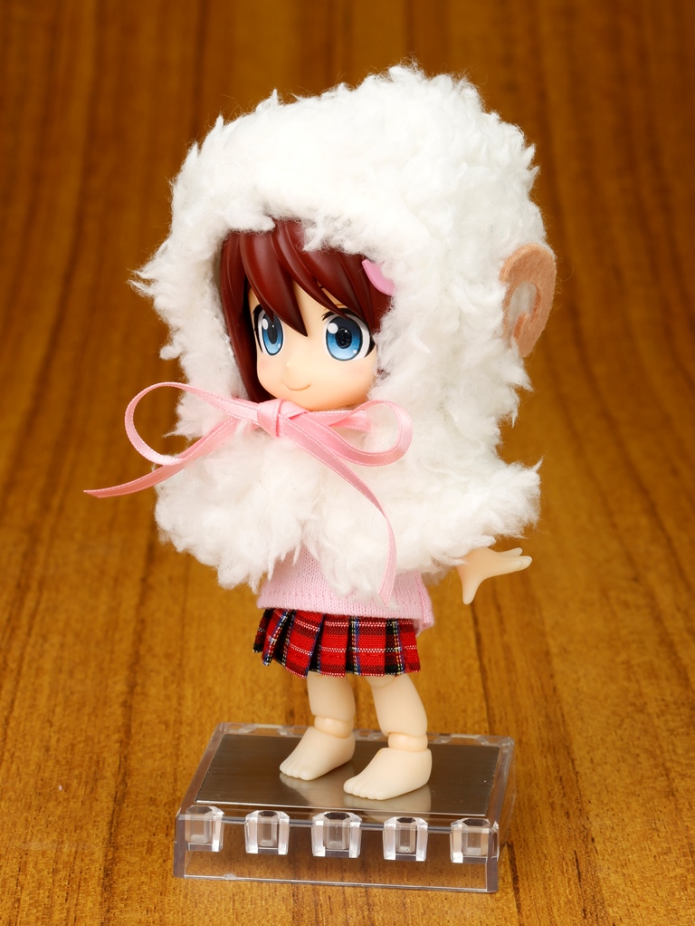 小さな体に豊富な可動、足裏のマグネットにより専用ベースの上では楽々といろんなポーズがきまる「キューポッシュシリーズ」、頭部はシリーズとして互換性があるため交換して遊ぶ事が出来ます。そのシリーズの商品をランダムに1個+遊びの幅が広がるえくすとらシリーズの着せ替えボディを1個、更に“羊”をモチーフとしたキューポッシュ用のお洋服「ひつじコーデ(フード&ケープ)」をセットにした商品です。