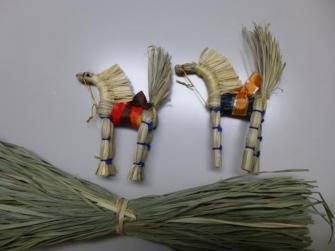 利用者の方は竣工式の記念品として、妙高市の伝統工芸品であるスゲ細工の春駒づくりに励んでいます。
