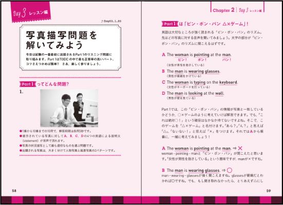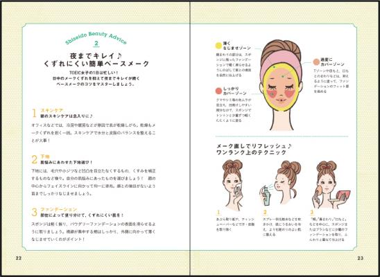 第1章では、「TOEIC女子の作り方」として、英語学習に取り組むことのメリットやモチベーションアップのコツを著者が生き生きと語っています。また、「自分を磨くことによってキラキラと毎日を過ごす女子を目指す」というコンセプトに賛同してくださった株式会社資生堂より資料提供を受けたビューティーコラムのページでは、メーキャップのコツなども紹介しています。