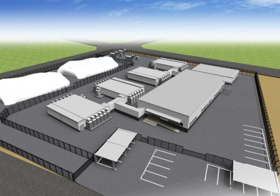 (2015年11月 2棟160ラック完成予定;2期工事で4棟320ラックまで増設予定)