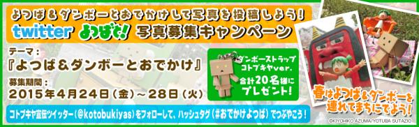 ホビーメーカー株式会社壽屋(本社:東京都立川市曙町/代表:清水一行)は、原作をはじめ数々のキャラクター雑貨でも人気の『よつばと!』を題材に、Twitter上で写真募集キャンペーンを開催、4月24日(金)~28日(火)の期間、テーマに沿った写真を募集します。