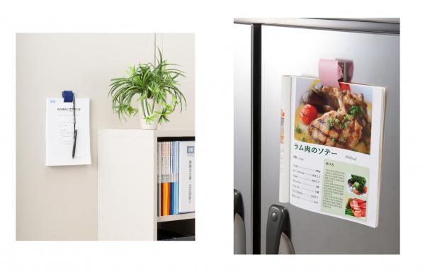 レシピ本を開いたまま冷蔵庫に留めてお料理をしたり、メモパッドや付箋も束ごと挟めるので、置き場所にも困りません。また、さまざまなサイズのクーポンなどをまとめてしっかりキープするのにも便利です。
