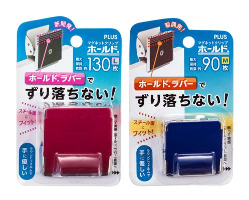 プラス株式会社(東京都港区 代表取締役社長 今泉公二)は、ラバー素材を使ったストッパー機能により分厚い書類を挟んでもスチール面からずり落ちにくく、しっかり留まる新開発のマグネットクリップ「ホールド.」を2015年5月29日に新発売します。