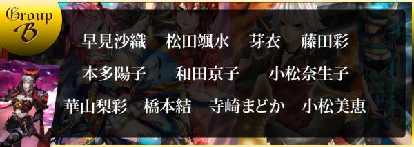 早見沙織さん、松田颯水さん、芽衣さん、藤田彩さん、本多陽子さん、和田京子さん、小松奈生子さん、華山梨彩さん、橋本結さん、寺崎まどかさん、小松美恵さん