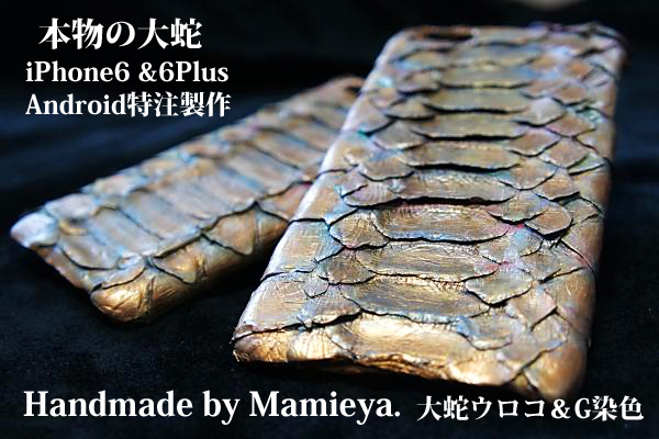 大蛇ウロコ加工と特殊ゴールド染色スマホケース