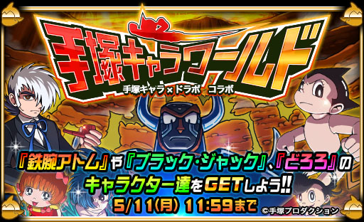 イベント期間中、『鉄腕アトム』『ブラック・ジャック』『どろろ』の人気キャラクターたちが『ドラゴンポーカー』に登場します。コラボ限定カードやコラボダンジョンで、手塚キャラクターたちがゲーム内で大暴れします。期間限定の夢のコラボイベントをどうぞお楽しみください。