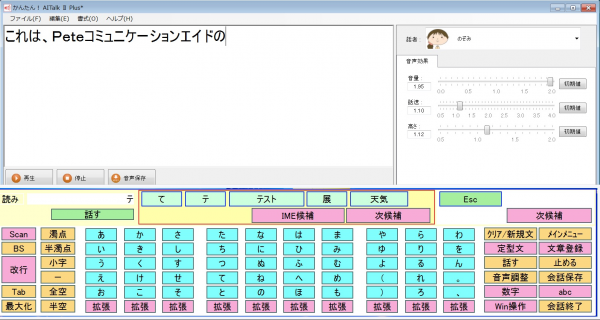 会話支援画面(予測入力で「かんたん!AITalkIIPlus」を操作)