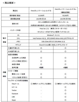 両ソフトが連携した障害者向けコミュニケーション支援製品「PeteコミュニケーションエイドII」は、2015年5月1日(金)より販売開始いたします。