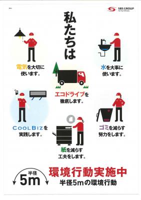 SBSグループ(代表:鎌田正彦、本社:東京都墨田区)は、「COOL BIZ」を今年も5月 1日から開始しますのでお知らせいたします。2015 年版オリジナルポスターを制作し、通年 実施している「半径5mの環境行動」とともに夏期の節電行動を啓発。SBSグループをあ げてCO2排出削減により地球温暖化を防ぐ取り組みを実施します。