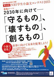株式会社野村総合研究所(本社:東京都千代田区、代表取締役会長兼社長:嶋本 正、以下「NRI」)は、大学生、留学生、高校生を対象にした「NRI学生小論文コンテスト2015」を開催します。このコンテストは2006年から毎年開催しており、今年は第10回目となります。