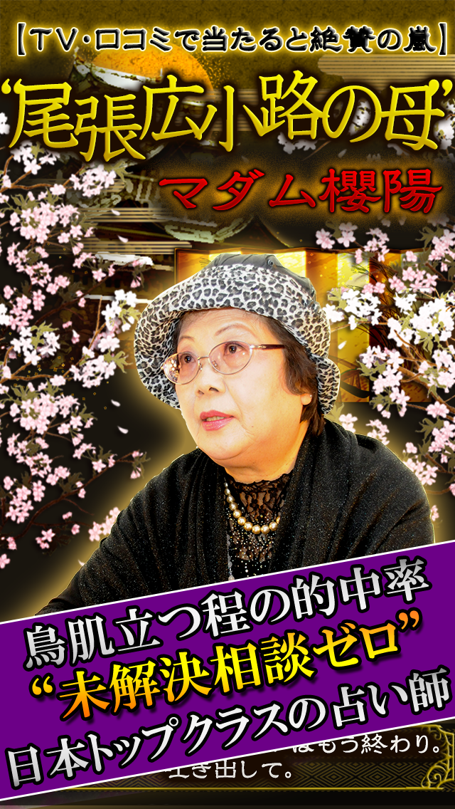 日本トップクラスで当たると絶賛の占い師“尾張広小路の母”マダム櫻陽のアプリが配信開始!