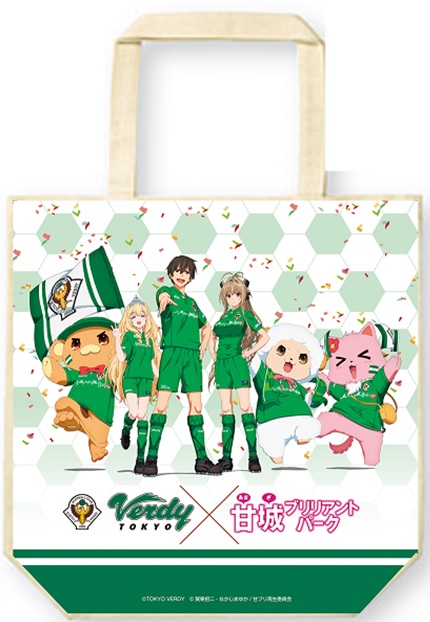 当日は、味の素スタジアムで行われる「VS徳島ヴォルティス戦」にて、甘ブリの登場キャラクターの声優を務める内山昂輝氏(可児江西也役)、加隈亜衣氏(千斗いすず役)、藤井ゆきよ氏(ラティファ・フルーランザ役)のトークイベントが開催予定、試合後によみうりランドで同ゲストによる「甘城ブリリアントパークラジオ」公開録音イベントが開催される予定です。よみうりランド会場(施設内、らんらんホール)にて、「東京ヴェルディ×甘ブリ」コラボグッズ第3弾である「トートバック(3,000円・税込)」を販売します。トートバックには東京ヴェルディユニフォームを着たキャラクター達のイラストが描かれ、甘ブリの看板マスコット「モッフル」の缶バッジも付属します。また、以前「アニ×サカ!!」で販売された「千斗いすず」「ラティファ・フルーランザ」の缶バッチも同会場にて販売します。