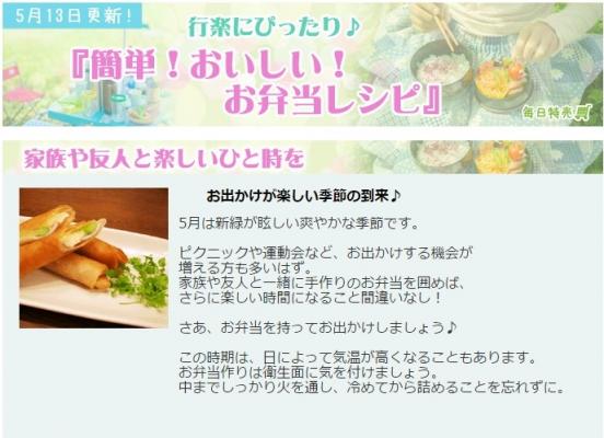 梅雨前のこの時期こそ気持ちのよい季節なので、お弁当を持って出かけてみては?