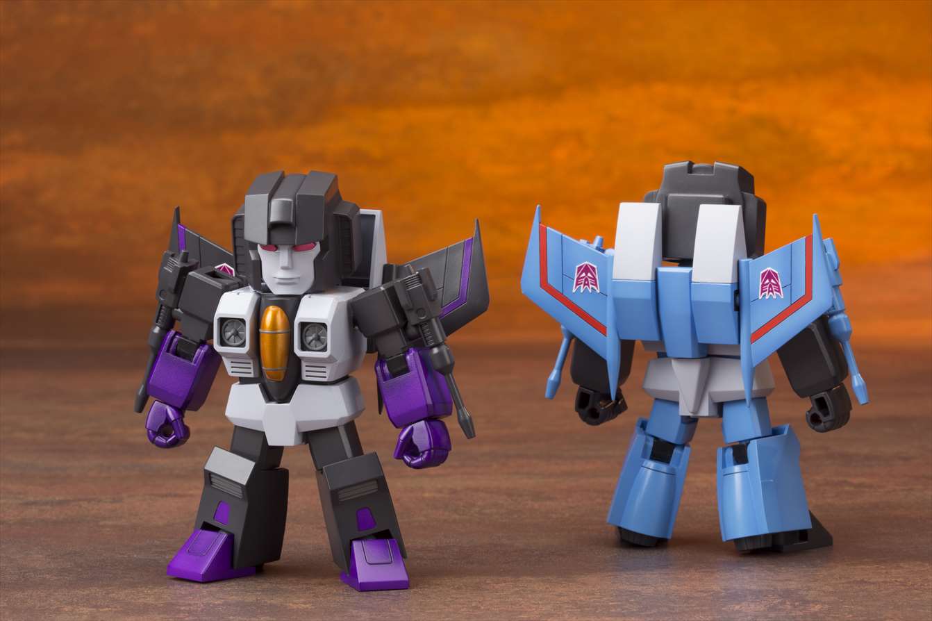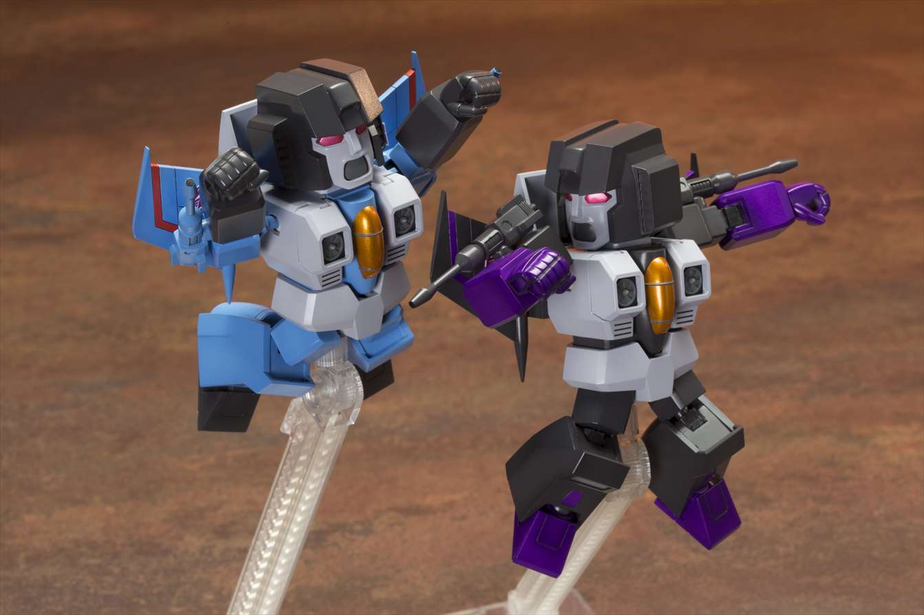 ホビーメーカー株式会社壽屋(本社:東京都立川市曙町/代表:清水一行)は、デフォルメプラモデルシリーズ「D-スタイル」にて、世界的な人気を誇るロボットアニメ『トランスフォーマー』に登場した、デストロンの航空参謀「スタースクリーム」と、それと同型の航空兵「スカイワープ&サンダークラッカー」のセットを2015年9月に同時発売します。