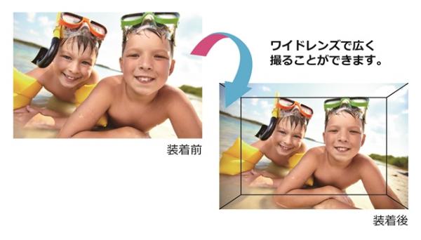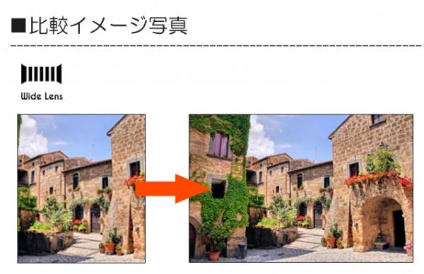 通常の撮影範囲の0.4倍も広い範囲まで撮影することができます。広大な風景写真や大人数での記念写真、立体