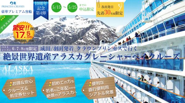 「成田/羽田発着 豪華プレミアム客船クラウンプリンセスで行く絶景世界遺産グレーシャーベイ アラスカクルーズ」