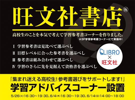 ※当日は商品内容に精通した旺文社社員が学習アドバイザーとして店頭に立ちます。参考書選びなど学習の悩みをお気軽にご相談下さい。