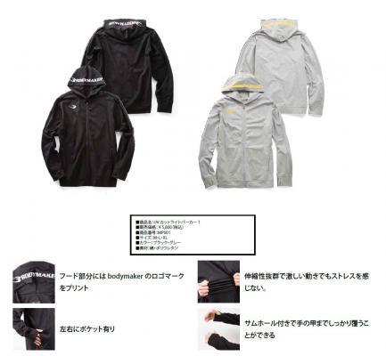 日本発のスポーツブランド「 ボディメーカー」は、UPF50+で初夏の紫外線対策に最適なUVカットライトパーカーを5月下旬より全国のボディメーカー直営店及びオンラインストア(http://www.bodymaker.jp/)で販売を開始します。
