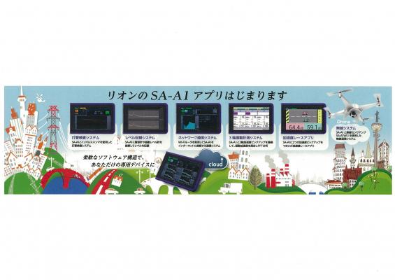現在リオンは、プラットフォームタイプのタブレット型多機能計測システムSA-A1を開発、販売しています。SA-A1は、ケーブル配線が困難な場所で、簡単に騒音・振動等の計測を行い、その結果を手元の画面上に可視化・表示できるタブレット型の無線計測システムです。