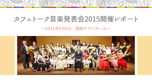 生徒様からお寄せ頂く「日頃の成果を発表する場を」のご要望に後押しされ、ユーザー様を中心に、カフェトーク初の発表会「カフェトーク音楽発表会2015」を銀座ヤマハホールで開催致しました。