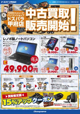 2015年5月23日(土)より「ドスパラ甲府店」にて、従来の新品パソコン・周辺機器の販売に加えて、中古製品の販売・買取をスタートいたします。