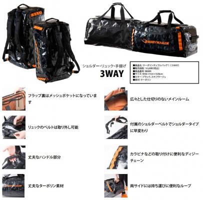 日本発のスポーツブランド 「ボディメーカー」は、最大容量 54 リットルで大会遠征に最適のターポリンダッフルバッ グを5月下旬より全国のボディメーカー直営店及びオンラインストア(http://www.bodymaker.jp/shop/g/gBE009/)で販売を開始します。
