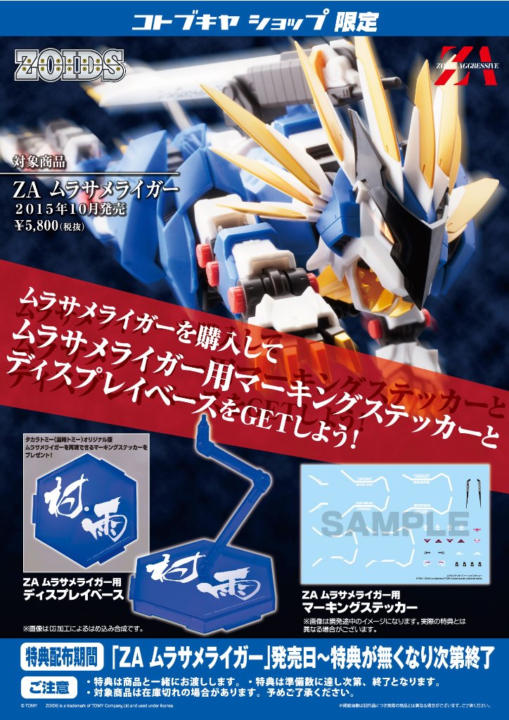 ※コトブキヤショップ(秋葉原館、大阪日本橋、オンラインショップ)でご購入頂くと、特典「ムラサメライガー用マーキングステッカー&ディスプレイベース」が付属します。