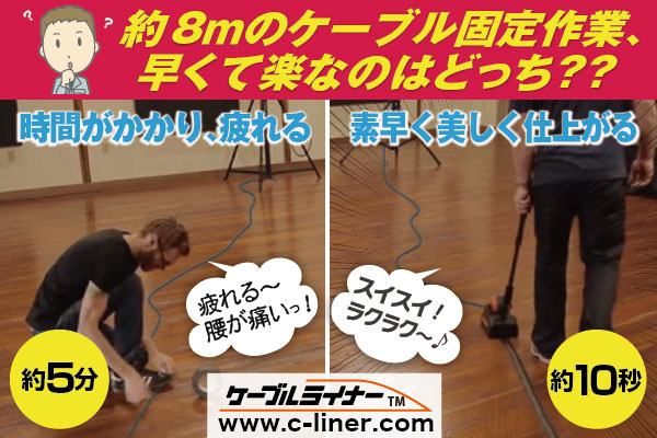 【ケーブルライナー】があれば、腰をかがめた面倒な作業を長く続ける必要もなくなり、