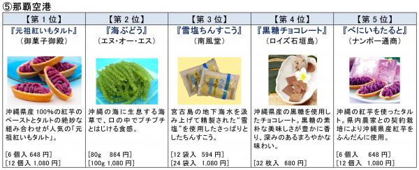 昨年3位だった『元祖御菓子御殿の紅いもタルト』が、1位にランクアップ。今回も沖縄ならではのご当地ものが上位を占めました。お菓子だけでなく、『海ぶどう』も昨年同様2位にランクインし、安定した人気を誇っています。[那覇空港担当談]