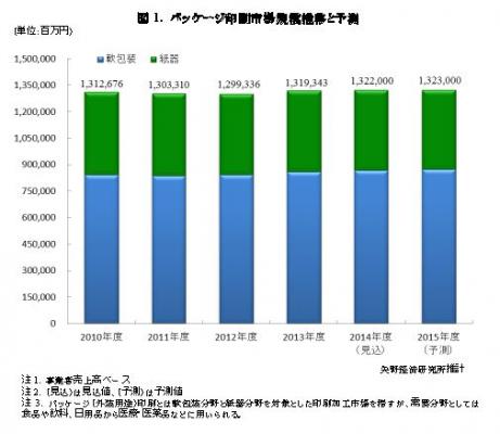 ◆2014年度のパッケージ印刷市場規模は1兆3,220億円、前年度比0.2%増の見込、