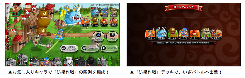 ※「防衛作戦」を設定していない場合、自動的に「剣士」をリーダーにしてランダムデッキでバトルを行います。