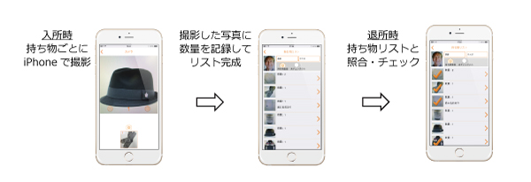 施設利用者の持ち物をiPhoneのカメラで撮影するだけで、利用者ごとの持ち物の写真リストを