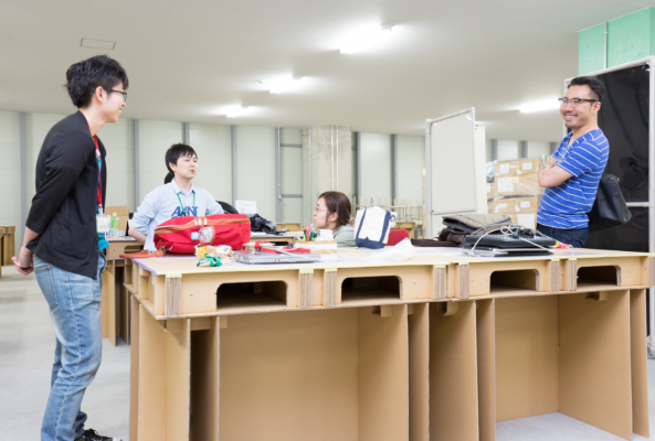 さらに、買取のお申込み数拡大に伴い、オフィスのレイアウトを臨機応変に変えていく必要のある当社は、デスクは移動がしやすいように出来る限り軽いものがよいと考えました。東京流通センターの物流倉庫でモノが搬出されている風景からヒントを得、デスクは現場で生み出した「ダンボールパレット」で作成、脚の部分は同じくダンボールを使用し、パレットと組み合わせられるように別注いたしました。内装や引越作業も業者に頼りきるのではなく、当社メンバーが協力して出来る限りのことを自分たちで行いました。