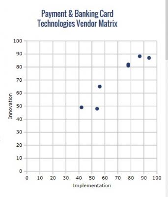 ABI Research’s Payment & Banking Card Technologies competitive assessment takes a closer look at the current market status quo, providing an independent look at each vendors’ current market position, strategies, and future outlook. Included in the competitive assessment is a vendor matrix whereby all the major smart card vendors operational within the payment cards market were judged and scored according to a set of criteria falling within the broader “Implementation” and “Innovation” categories. Each vendor was assessed against a total of 10 criteria and accordingly ranked based on scores achieved.