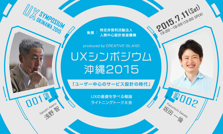 人間中心設計(Human Centered Design:HCD)関連活動を推進している特定非営利法人 人間中心設計推進機構(理事長:黒須 正明、以下「HCD-Net」)と琉球インタラクティブ株式会社(本社:沖縄県宜野湾市、代表取締役社長:臼井 隆秀)は、サービスデザインについて理解を深めるイベント「UX(ユーザーエクスペリエンス)シンポジウム沖縄2015」 produced by CREATIVE ISLANDを、2015年7月11日(土)に開催します。