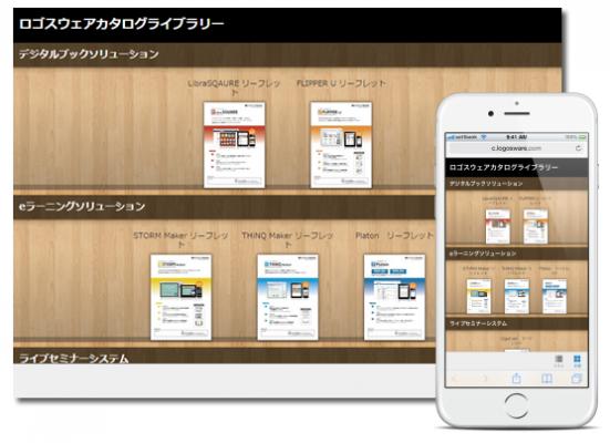 「LOGOSWAREオンラインストレージ」を利用するもう一つのメリットは、本棚型の表示機能が付いていることです。複数のデジタルブックを本棚に並べた形式でウェブ公開できるようになっています。スマートフォンやタブレットでの閲覧にも対応しています。