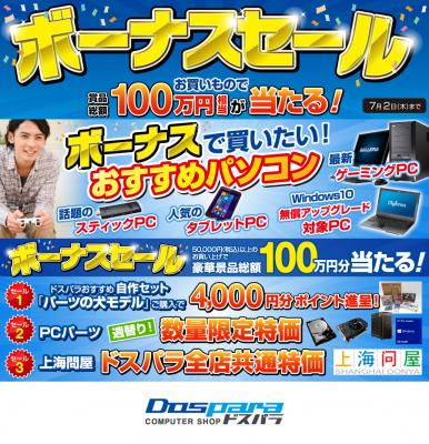 全国22店舗及びウェブ通販のパソコンショップ『ドスパラ』(代表取締役社長:西尾伸雄 本社:東京都千代田区)は、2015年6月5日(金)より『ボーナスセール』『DMMポイントプレゼントキャンペーン』を開始いたしました。