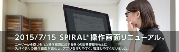2000年に開発をはじめ、翌2001年に提供開始された「スパイラル(R)」15年目の大幅なリニューアルとなります。お客様にご要望等を投稿していただく「改善・不具合掲示板」に寄せられた多くのお声を反映しており、既存ユーザーが混乱せずに操作できるよう、従来の操作感をキープしながらも、使い勝手を向上させる導線設計や、シンプルで視認性の良いデザインを取り入れ、さらに業務効率化を図る便利な新機能も実装し、大幅なユーザビリティ向上に努めました。