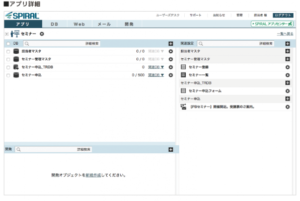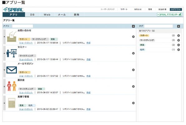 「スパイラル(R)」は、2012年11月にリリースしたバージョン1.11.3にて、データベース(以下「DB」)、フォーム、一覧表などの設定オブジェクトを、利用用途に応じて自由にパッケージングできる機能「アプリ」を搭載し、翌2013年には、作成した「アプリ」の管理や受渡しをクラウド上で完結できる「スパイラルアプリセンター」を搭載するなど、PaaSならではのWebアプリケーション開発における優位性をいかすサービス強化を推進してまいりました。
