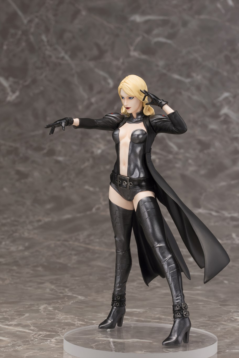 その最新コスチュームは、彼女らしい肌の露出は残しながら、ニューチャールズエグゼビアスクール在籍のX-MEN達の多くが着用する黒を基調としたスタイルへ一新されました。ポージングはミュータント能力であるテレパシーを発動させているポーズで立体化、1/10スケールのサイズながら、美しく整った顔の表情にも注目です。