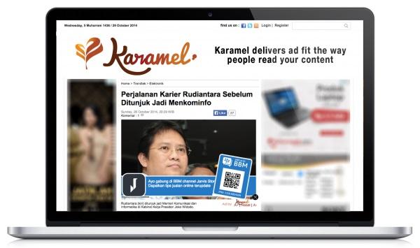 「Karamel In-image」は、ポータルサイトやブログなどの記事に使用する画像と関連性の高い広告を、記事と自然に溶け込ませた形で出稿することができる、インドネシアで唯一のネイティブ広告プラットフォームです。