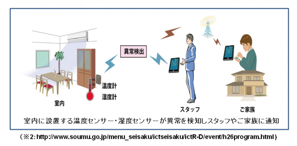 本実証実験のシステムは、以下の仕組みにより、集合住宅管理スタッフが各部屋を巡回することなく24時間居住者を見守ることを可能とするものです。