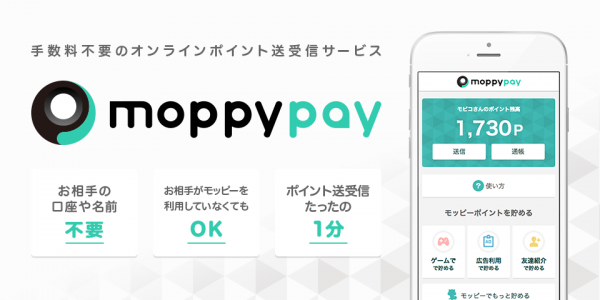 貯まったポイントは、「現金」「電子マネー(楽天Edy、WAONポイント、Suicaポイント、WebMoney)」「デジタルコード(iTunesギフトコード、Amazonギフト券、Vプリカ)」「ゲームコンテンツ」「ビットコイン」等にスマートフォン上でリアルタイムで交換が可能で、今回の「moppy pay」の開始によりユーザー間でのポイント送受信が可能となります。今後もより利用価値の高い交換サービスをユーザーに提供することで、ポイント利用の活性化を図ってまいります。