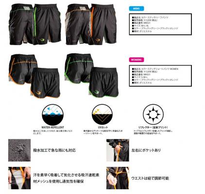 撥水加工を施した生地が、急な悪天候にも対応します。紫外線からデリケートな肌を守り、快適なスポーツシーンをサポート。トップスにリフレクターを施したプリントを配し、夜間の暗闇での安全をサポート。汗を素早く吸着して気化させる吸汗速乾素材メッシュを使用し通気性を確保。ウエストは紐で調節可能。左右にポケットあり。