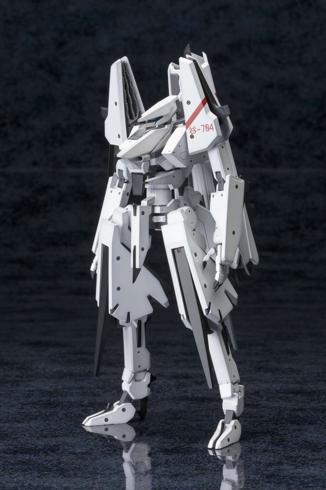 弐瓶勉氏自らが描き起こした「継衛改二」の設定画を、同氏完全監修のもとで忠実に再現しました。太腿部装甲の接続方法を従来の継衛より変更し、足首にも可動部分を追加したことで自立性と遊びやすさの向上を図りました。さらに肩から上腕部の関節構造も一部見直しを図ることで、通常の「継衛」以上の可動範囲へと拡大させています。劇中で登場する特徴的な「頭部ヘイグス粒子砲」「背部ブースター」を可動にて再現し、腕部(盾)の人工カビ刃も再現可能です。肩に格納されたブレードは取り外して、手に装備することができます。また、ホワイトの成型色は設定通り光沢のある素材を採用し、他部位との質感の違いまで再現しています。