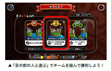 「目の前の人と遊ぶ」からルームを作成、または「目の前の人と遊ぶ」で作成されたルームから
