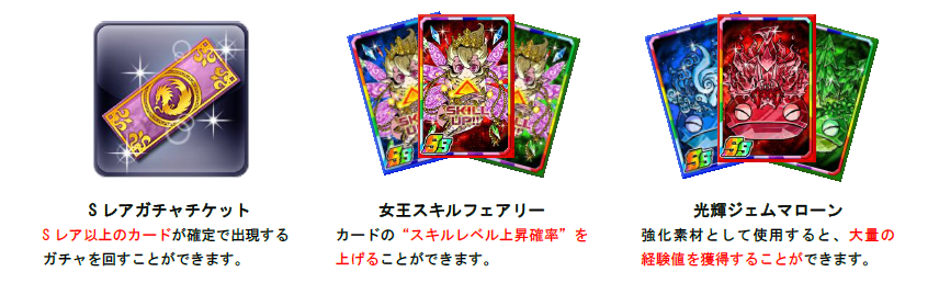 ※SレアガチャチケットとレアガチャチケットでSSレアが出現した場合、コスト28以下のSSレアとなります。